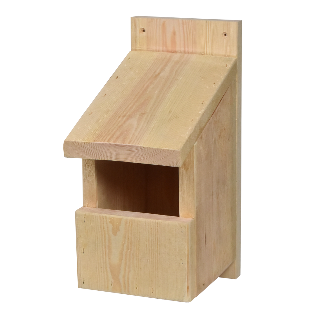 All the timber I use is 19mm thick European redwood Pine and is sourced from a U.K company with a superb sustainability policy. The timber is left natural rough sawn to enable the fledglings to climb out when they are ready to leave the box. The boxes are made from a very durable and robust thickness of timber that is chunky and strong. It will be resilient to all weathers and has proved to be a lovely home for many breeding birds and even a resting space overnight for individual birds.